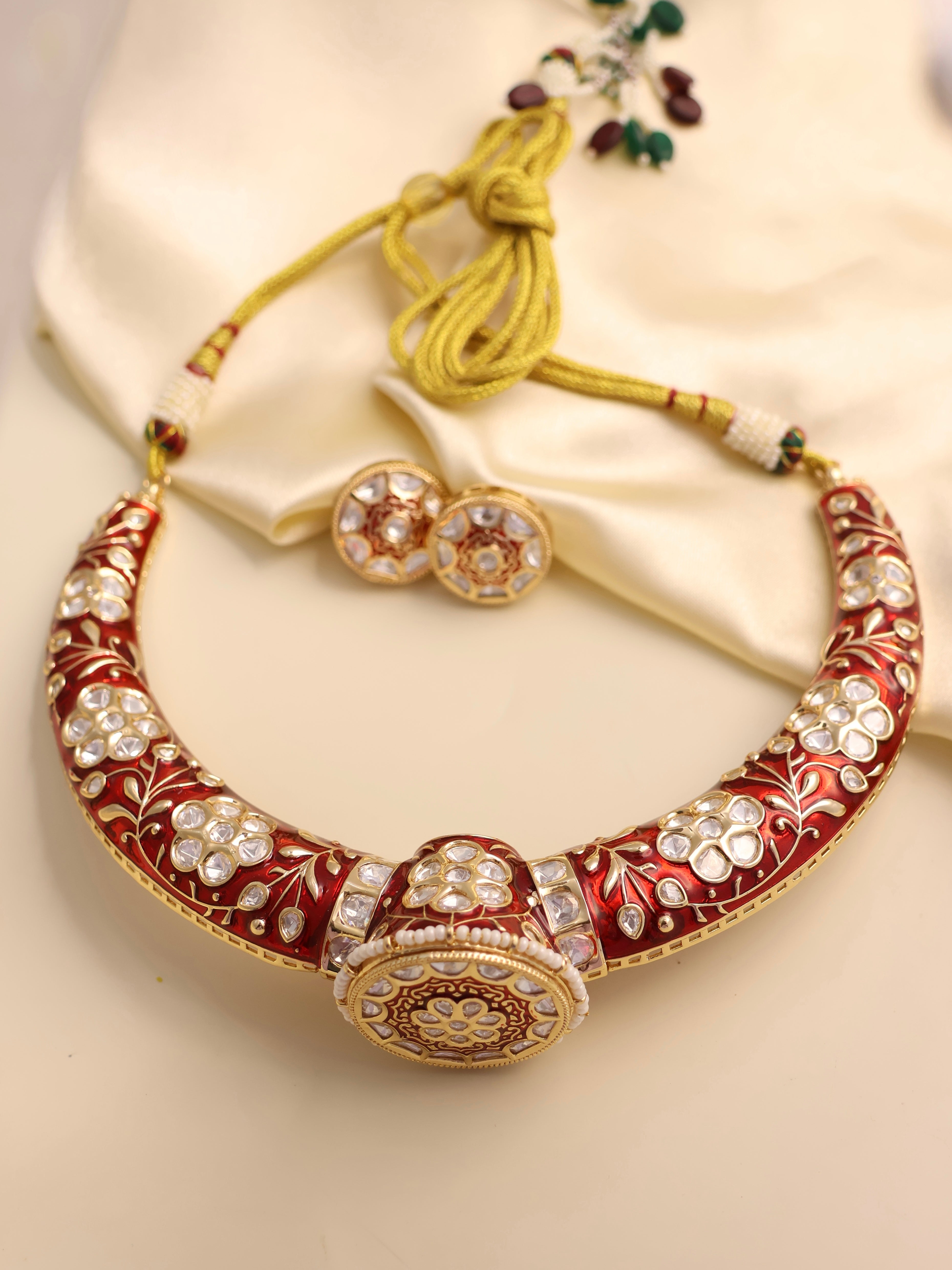 Designer Hasli With Studs( Traditional Meenakari Choker Set)