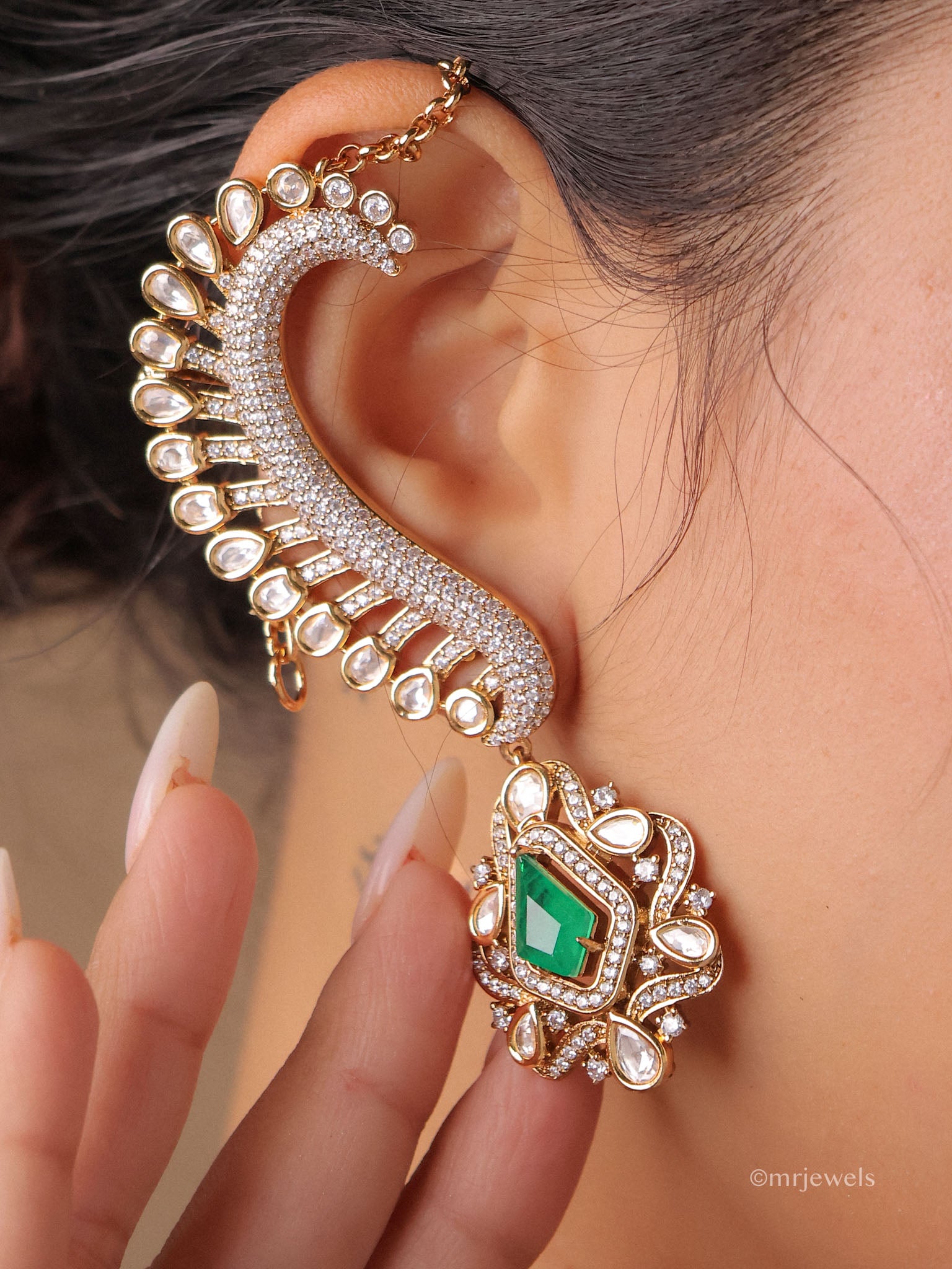 - Handcrafted Polki-style stones