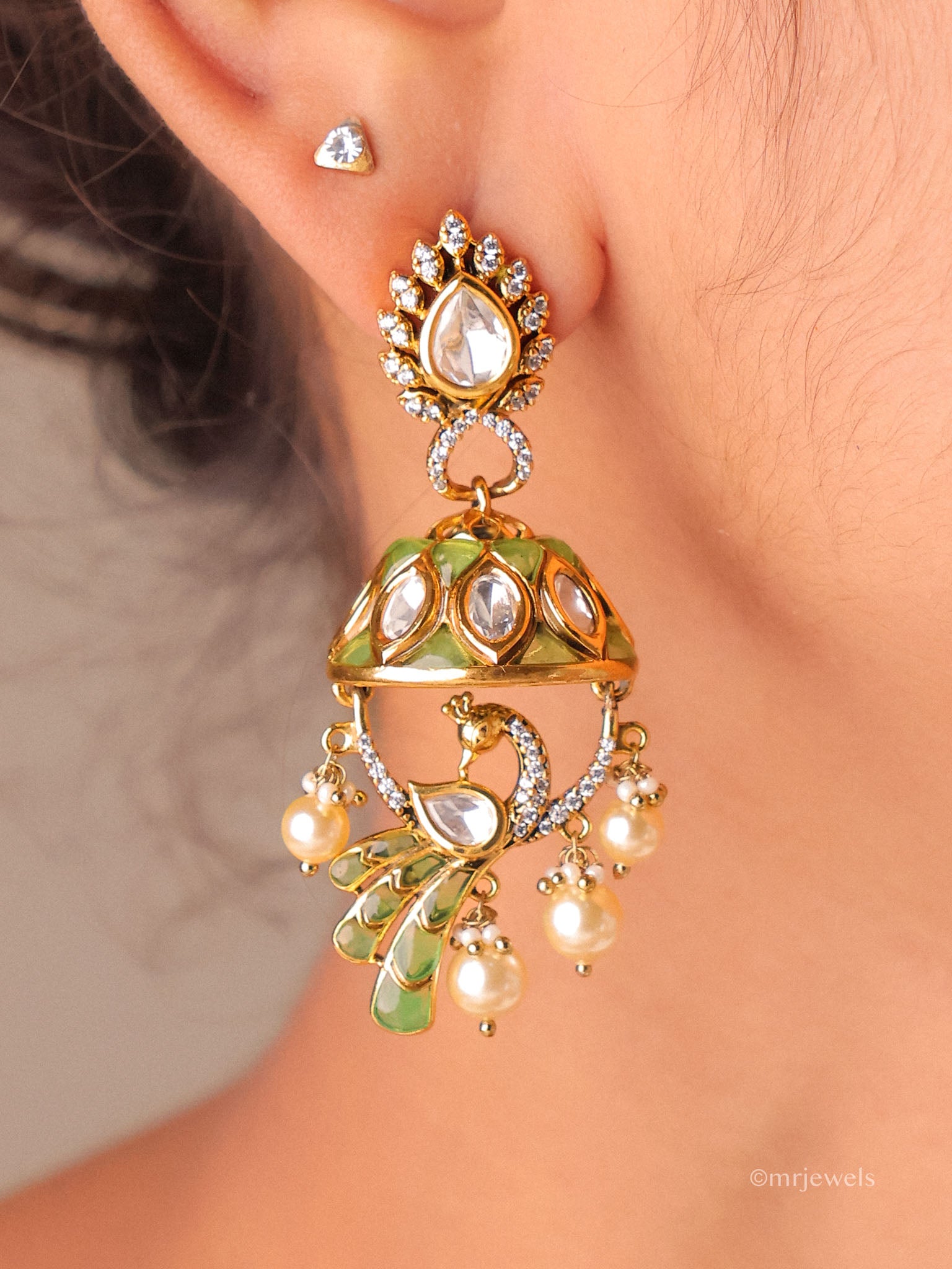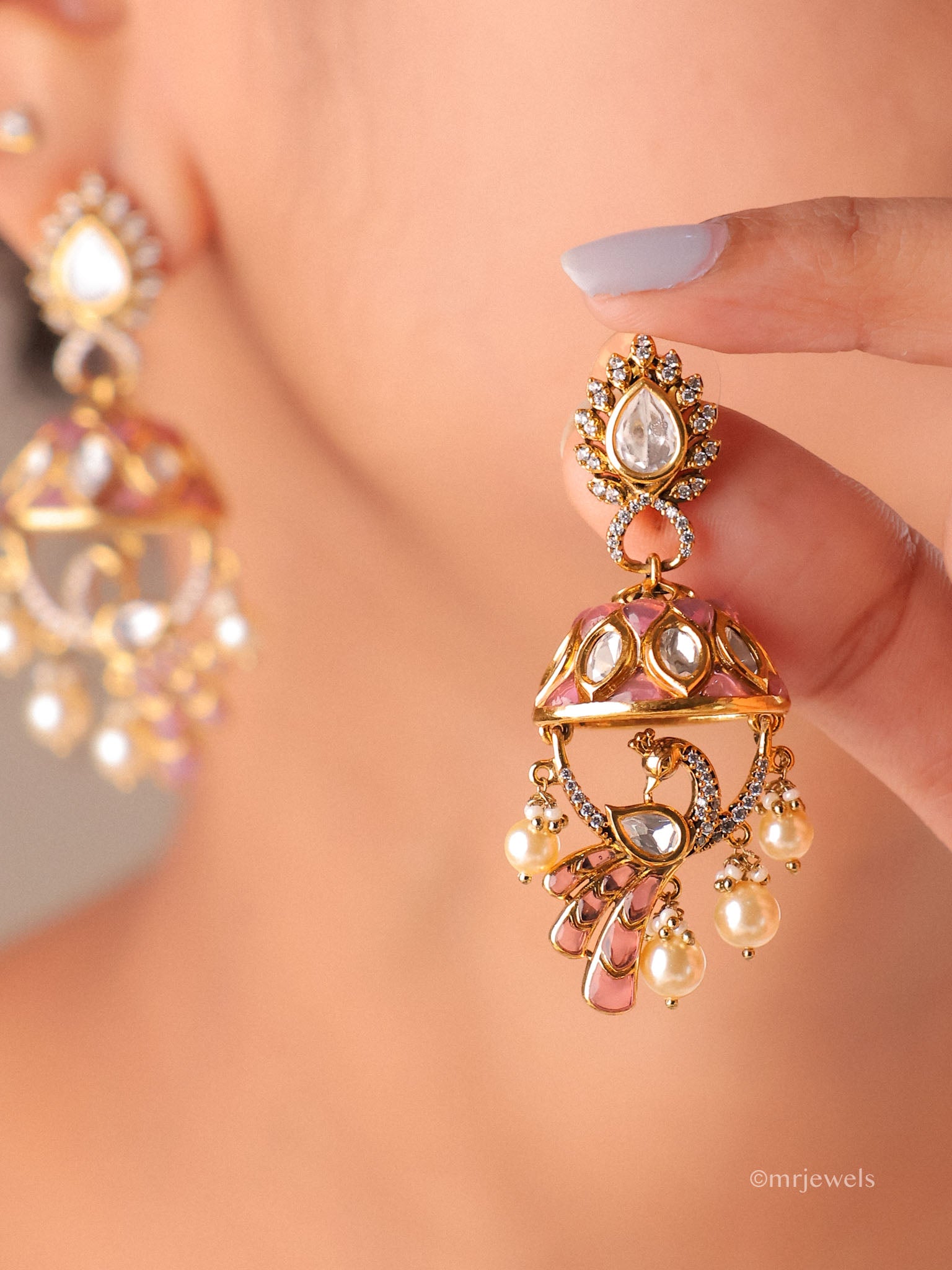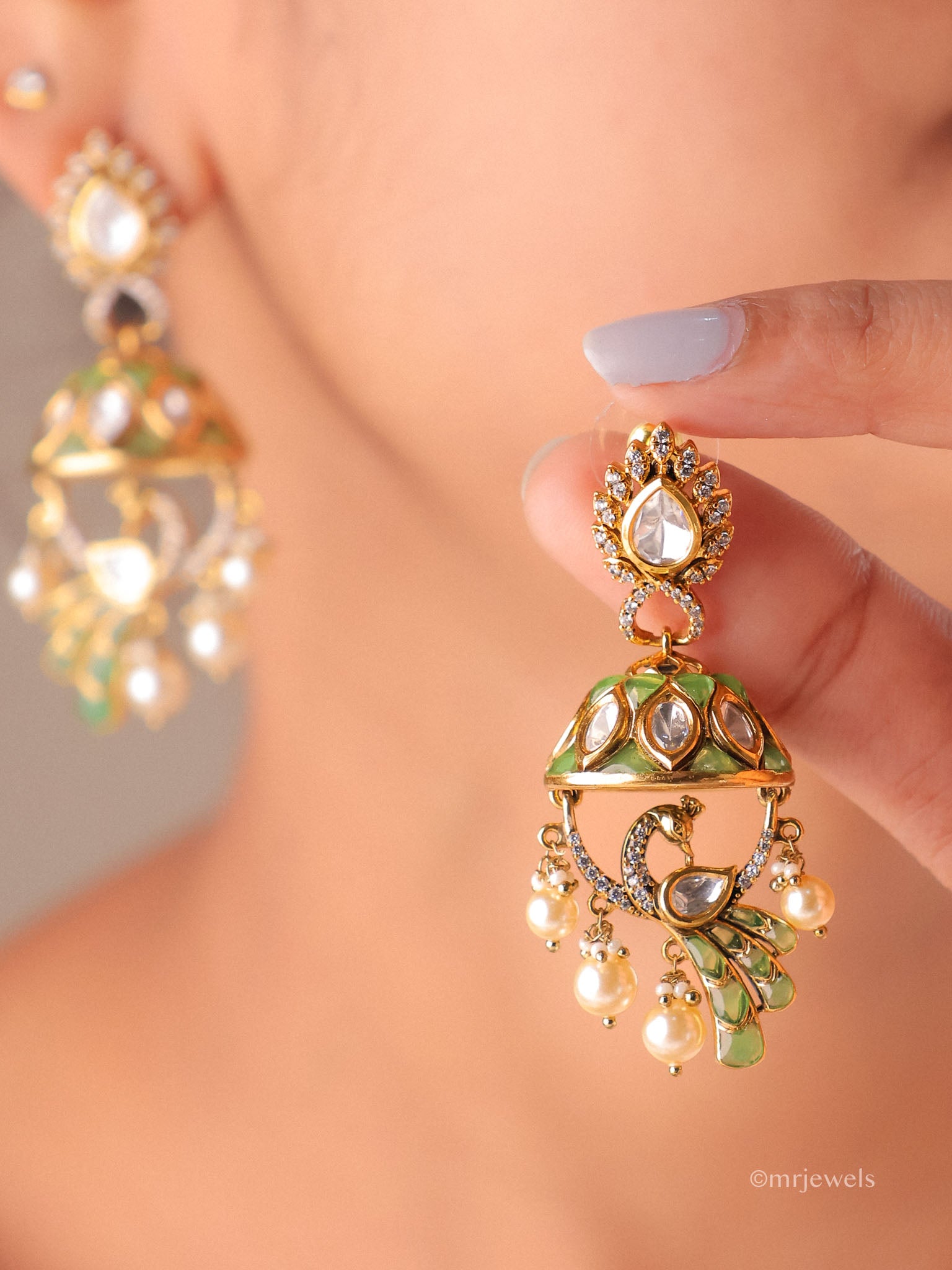 The intricate detailing paired with luminous pearls makes it perfect for both festive occasions and intimate celebrations. Lightweight yet statement-worthy, these jhumkas strike the perfect balance between tradition and modern charm.
