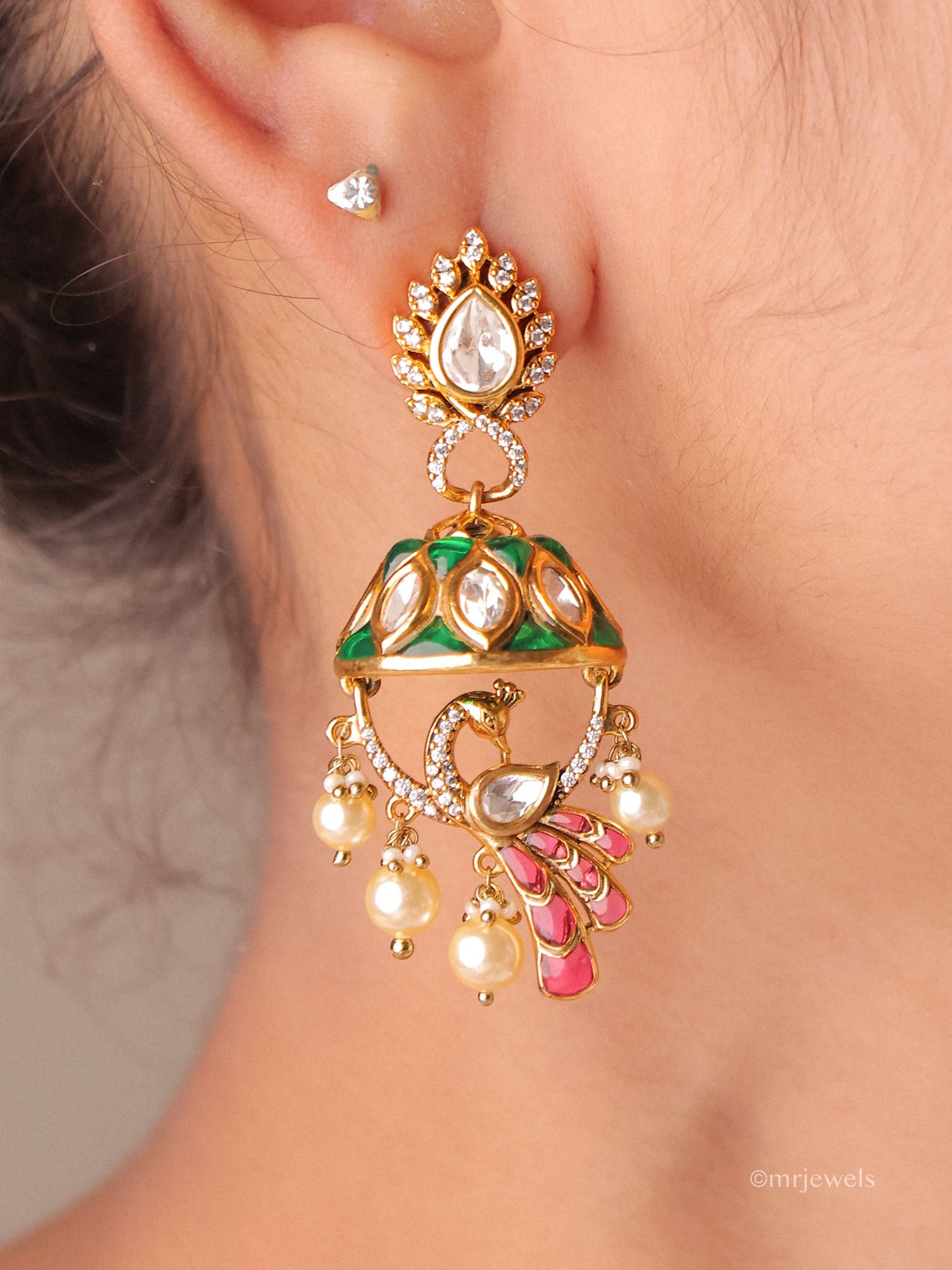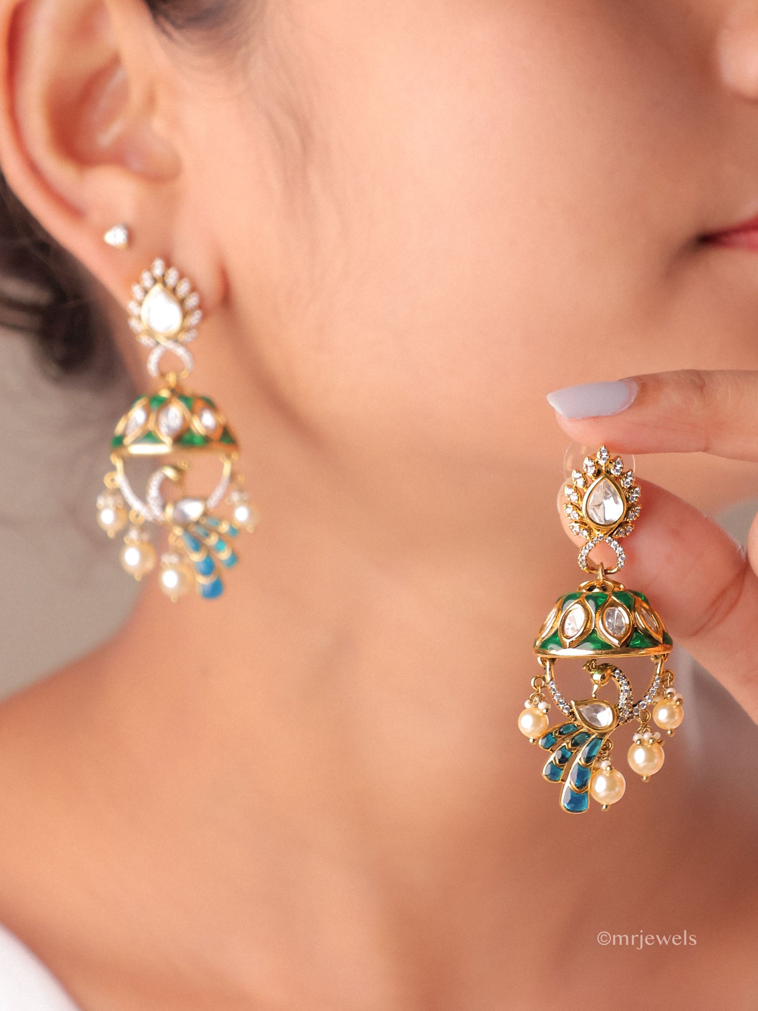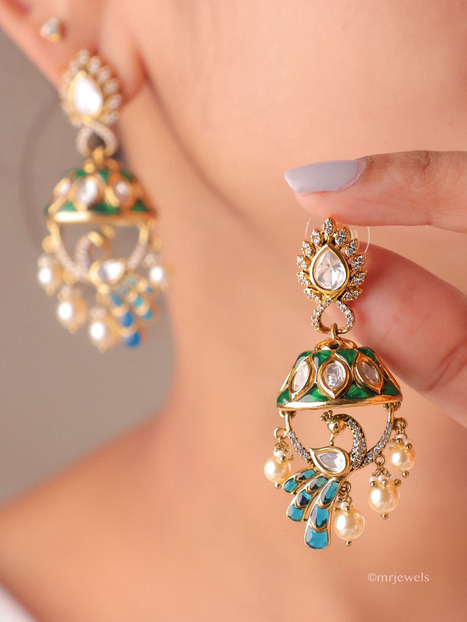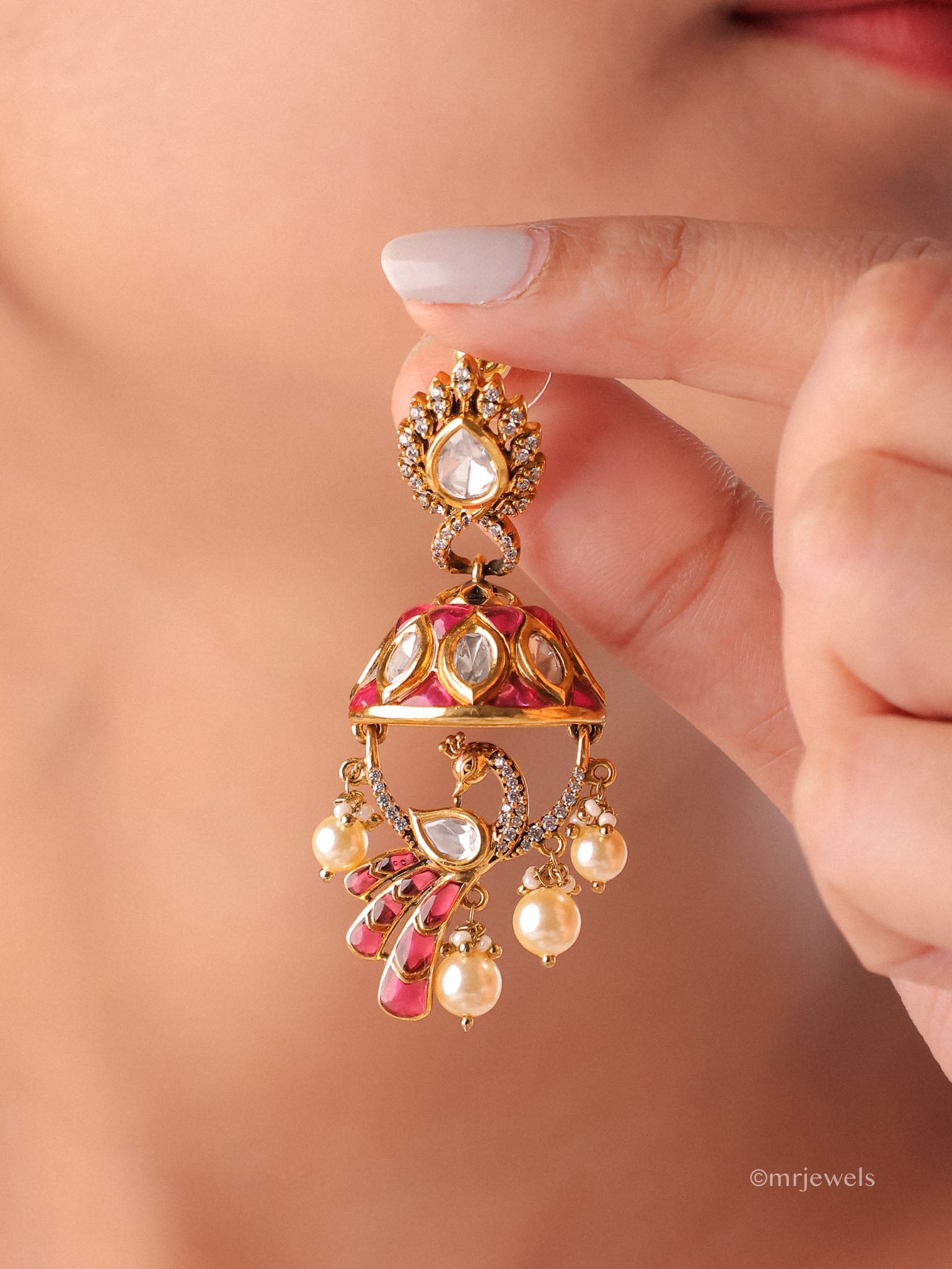 The intricate detailing paired with luminous pearls makes it perfect for both festive occasions and intimate celebrations. Lightweight yet statement-worthy, these jhumkas strike the perfect balance between tradition and modern charm.