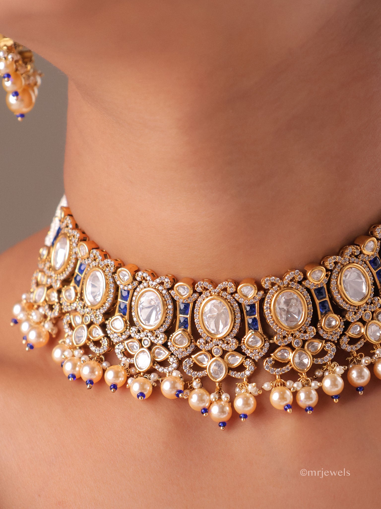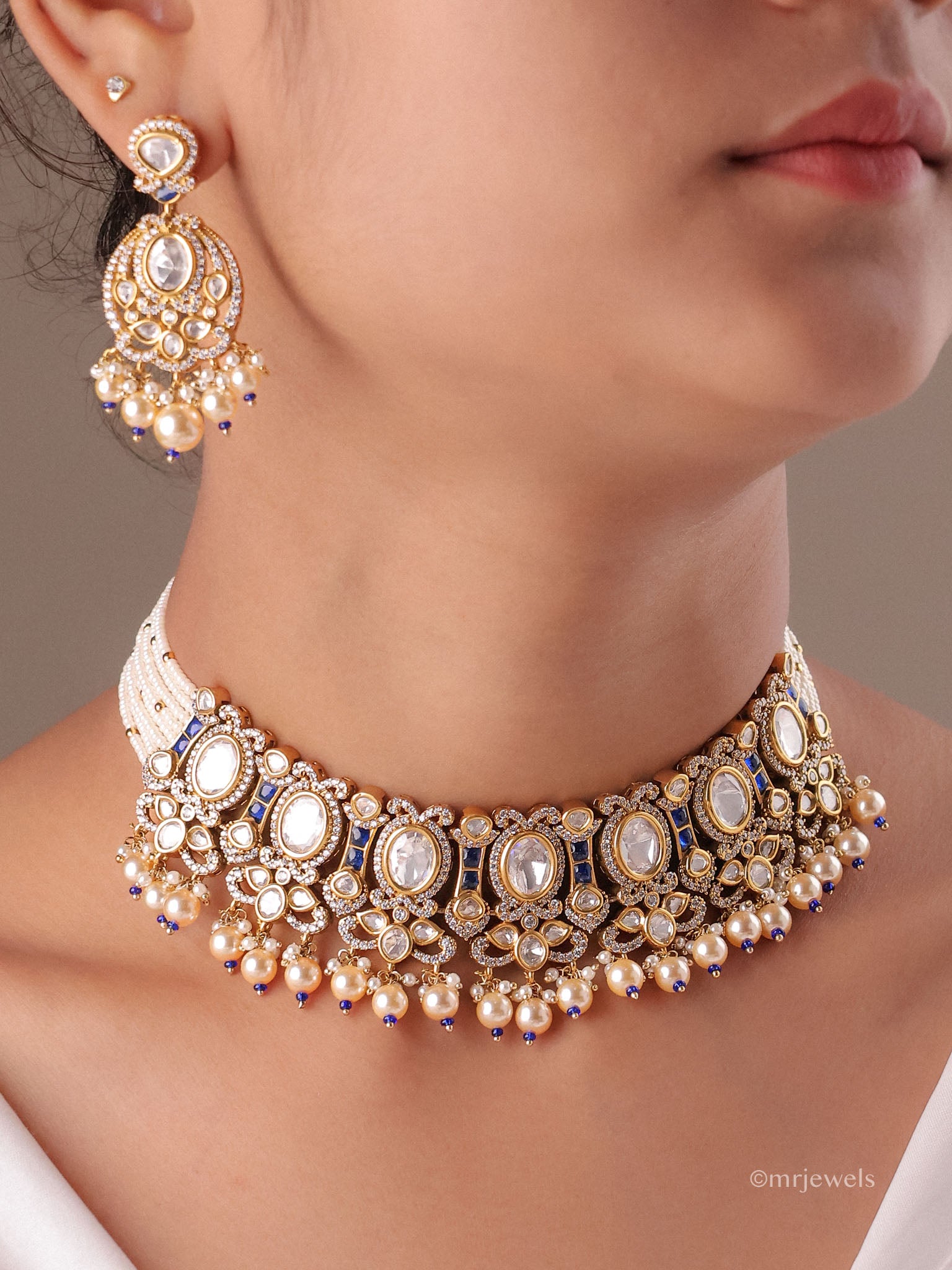 Paired with matching statement earrings, this choker set is perfect for weddings, festive occasions, and grand celebrations.